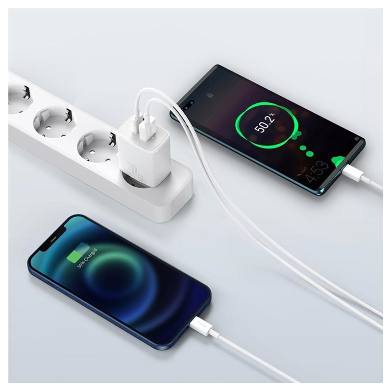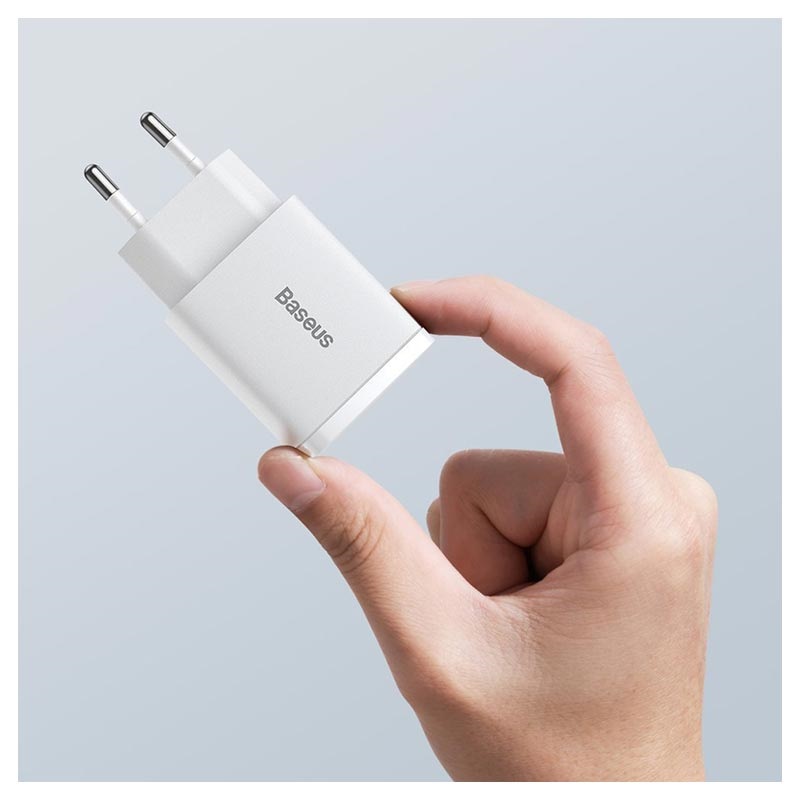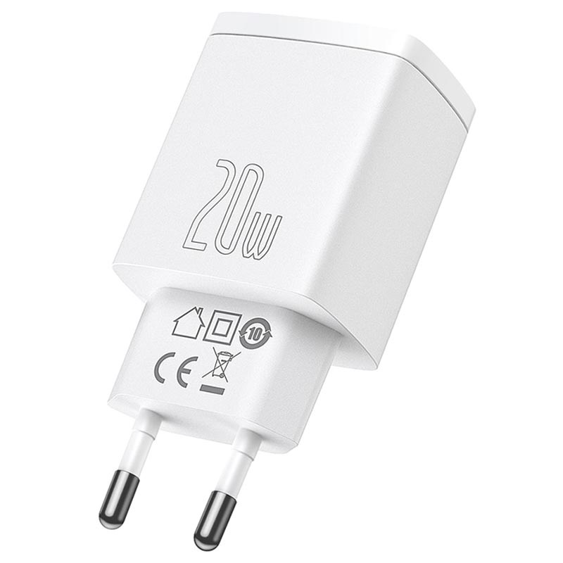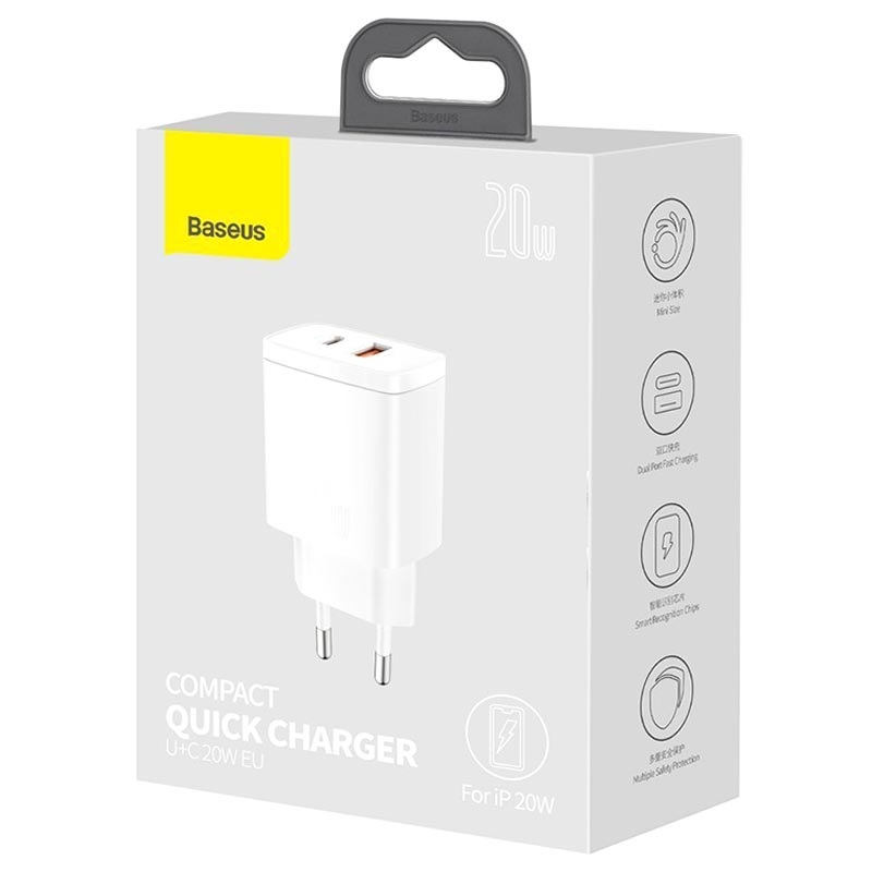 Carregador de Tomada de 20W Baseus Compact - USB-C, USB-A, QC3.0, PD3.0, Apple 2.4, BC 1.2- Ficha UE
