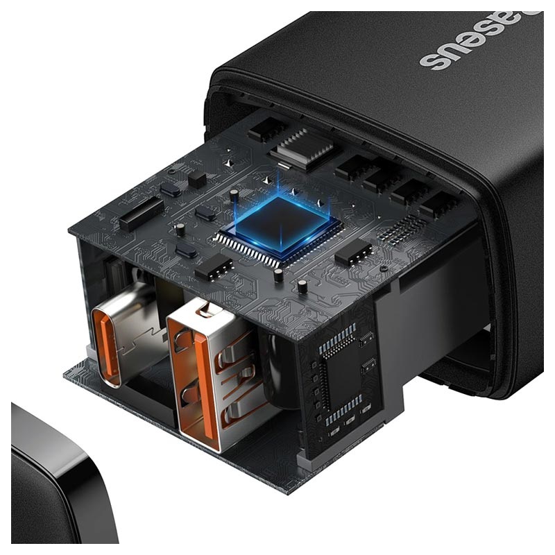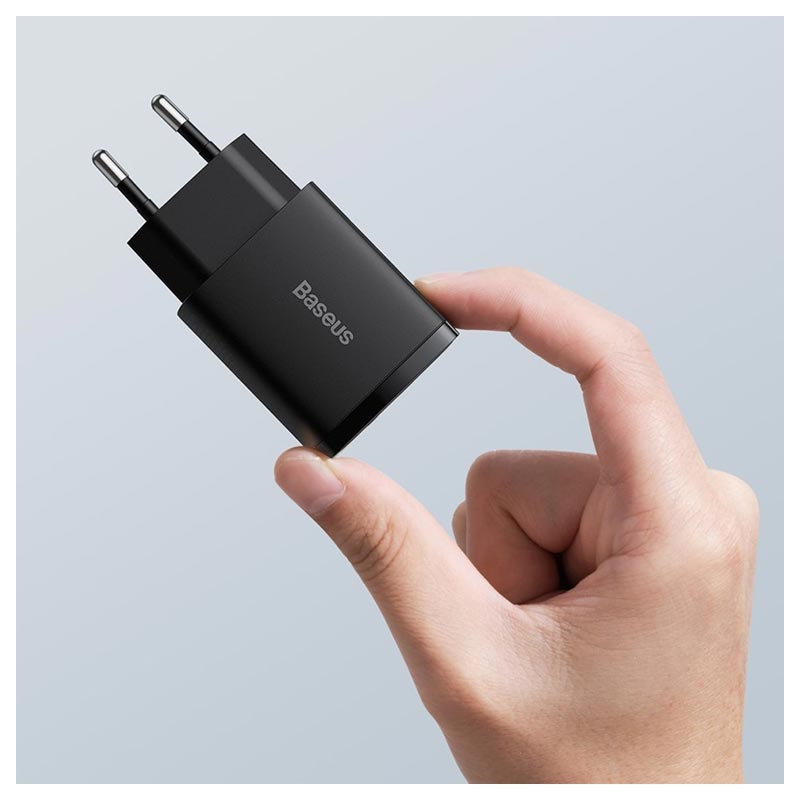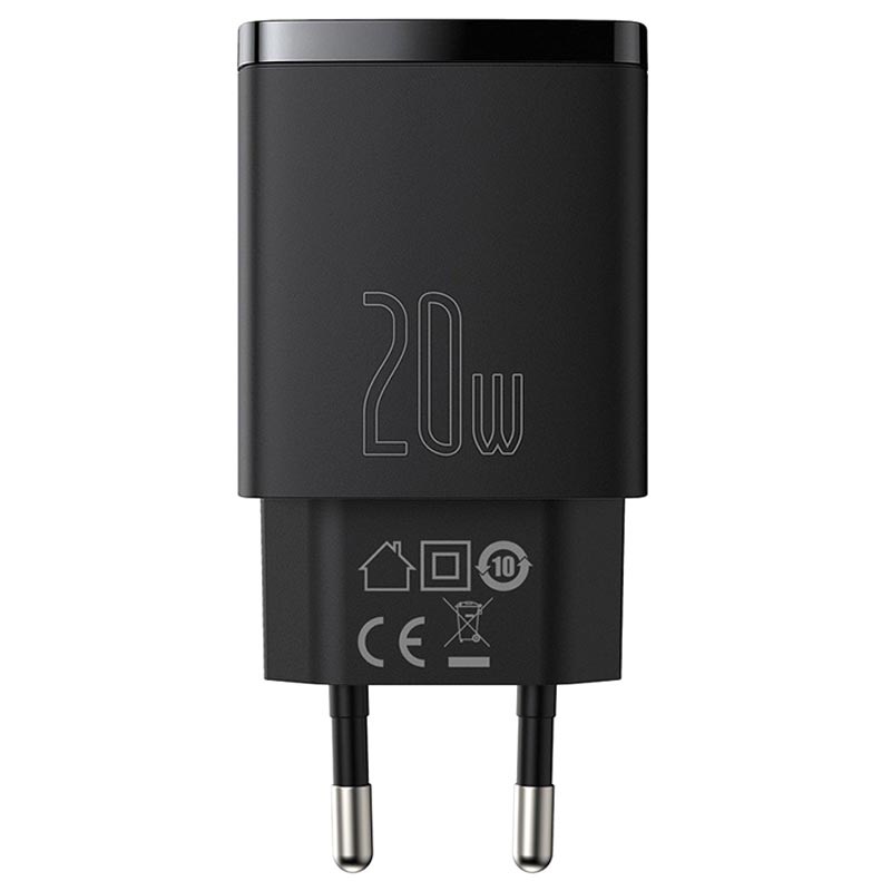 Carregador de Tomada de 20W Baseus Compact - USB-C, USB-A, QC3.0, PD3.0, Apple 2.4, BC 1.2- Ficha UE