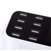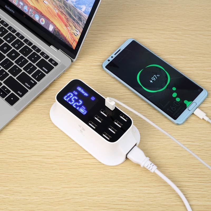 - Carregador USB de mesa com 8 portas e visor LED para carregamento simultâneo de 8 dispositivos