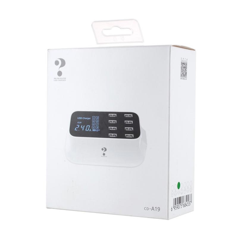 Carregador USB de Mesa com 8 Portas e Visor LED - 8.0A, 5.2V