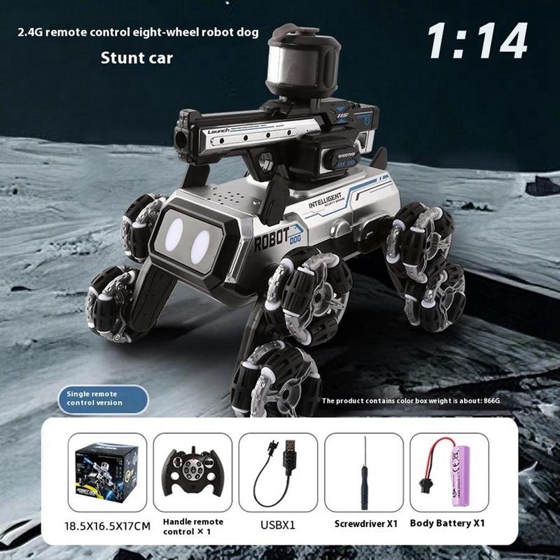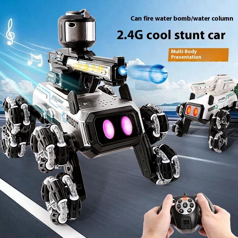Carro de acrobacias RC 2.4G / Veículo de subida e deriva todo-o-terreno transformável de 8 rodas com disparador de bombas de água