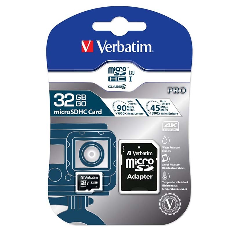 Cartão de Memória MicroSDHC Verbatim Pro - Classe 10 - Classe 3 UHS - 4K UHD