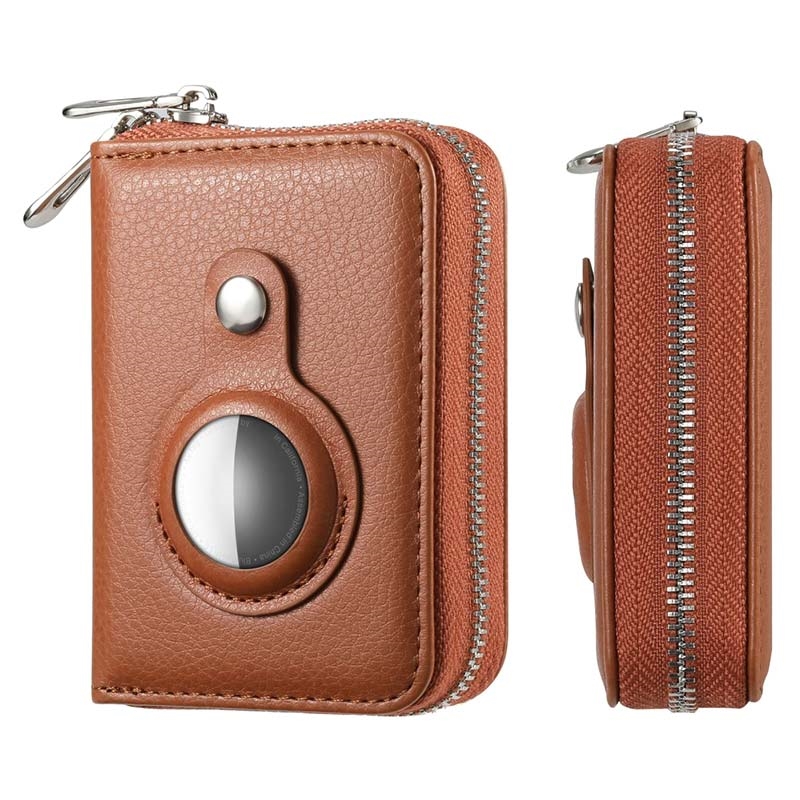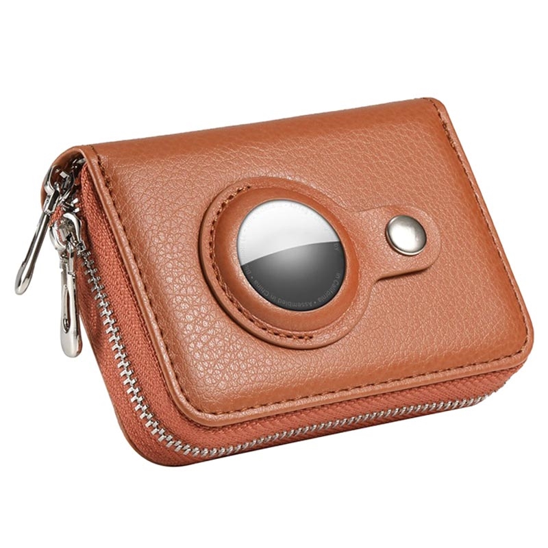 Carteira Zipper com Suporte Apple AirTag 1/2 e RFID - Castanho