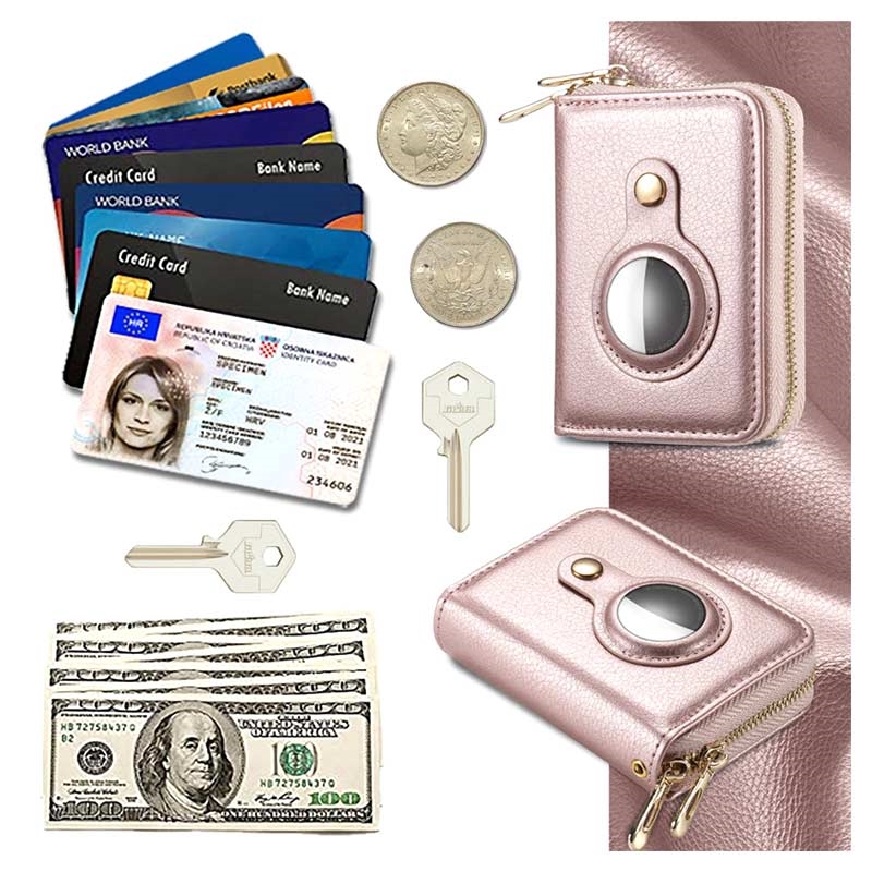 Carteira com Zíper com Suporte Apple AirTag 1, AirTag 2 e RFID