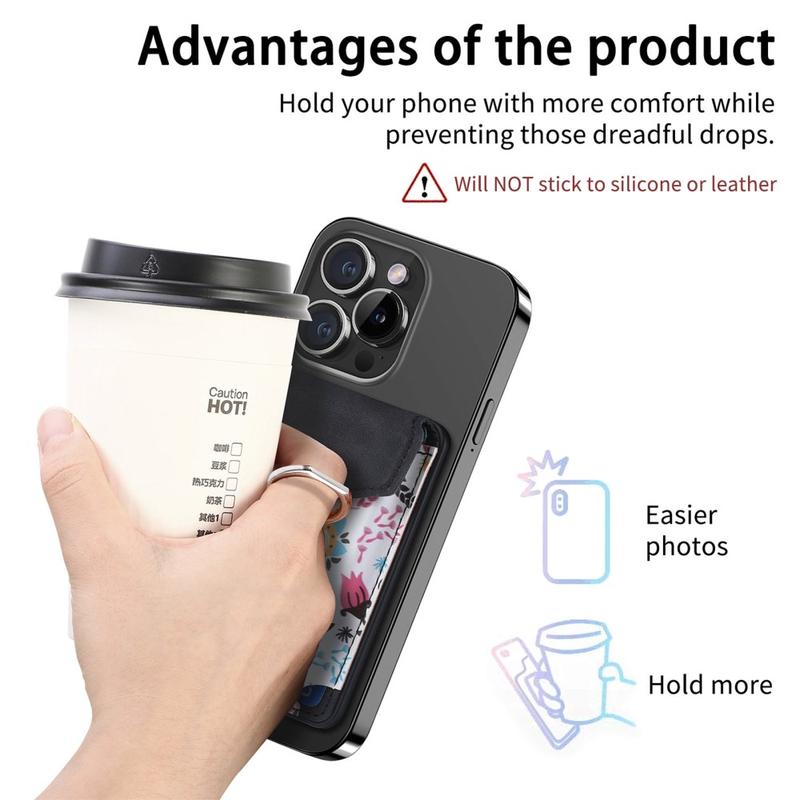 Este suporte para cartões é ideal para utilizadores que pretendem praticidade sem sacrificar o estilo. Mantém os seus cartões seguros, melhora o manuseamento do telefone com o suporte de anel e adiciona conveniência de mãos livres através da sua função de suporte. A forte fixação magnética garante confiança na utilização diária, mesmo em movimento.