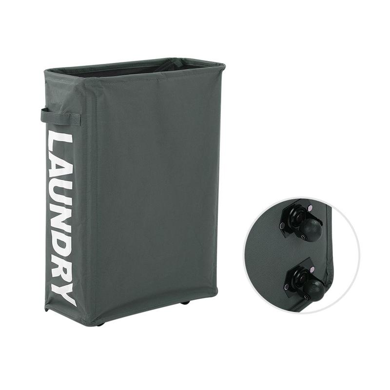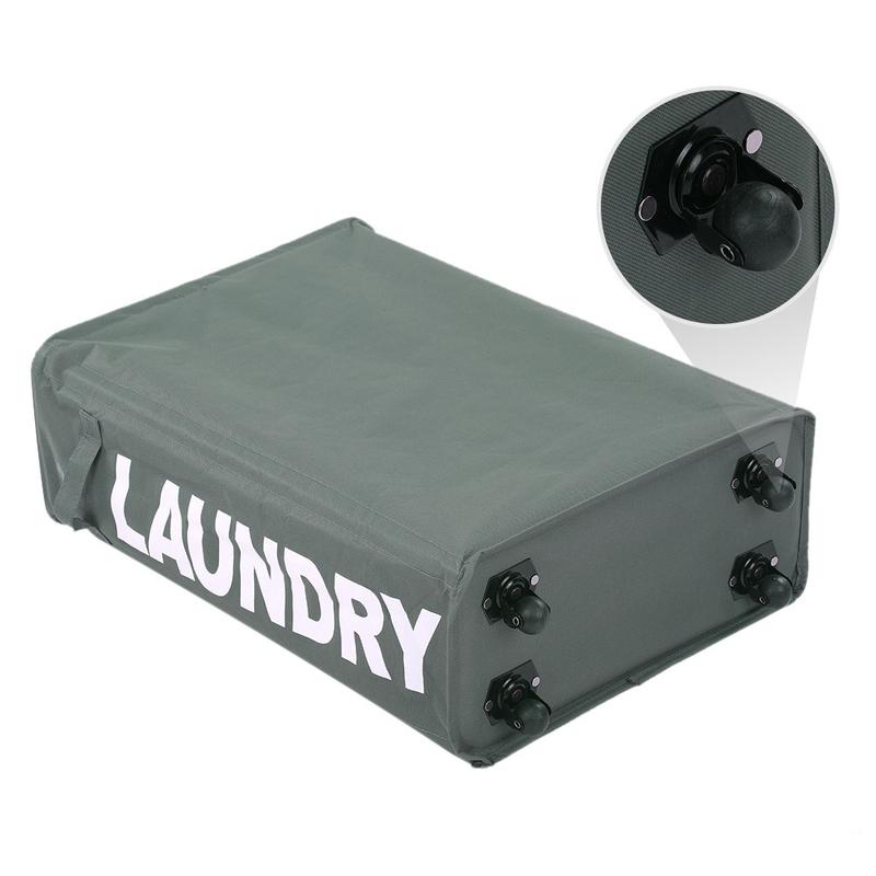 Cesto de roupa suja dobrável em Oxford com rodas e tampa de rede com cordão - cesto de roupa suja de canto