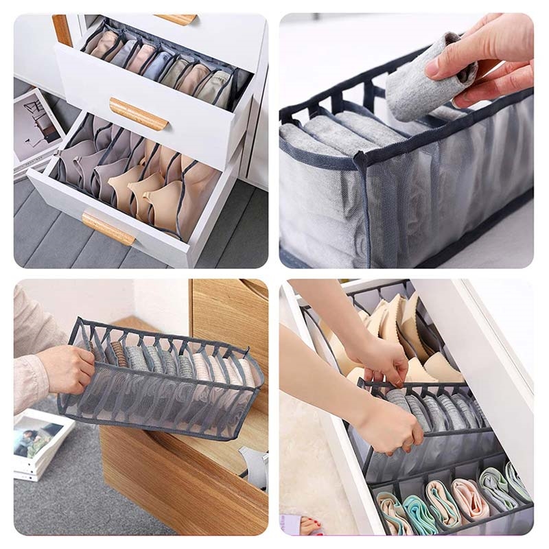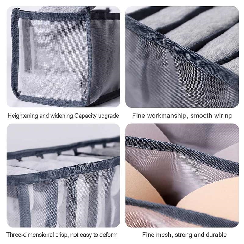 Organizador de gavetas para meias e roupa interior - Caixa de arrumação divisória de armário dobrável com 7 grelhas, malha de nylon