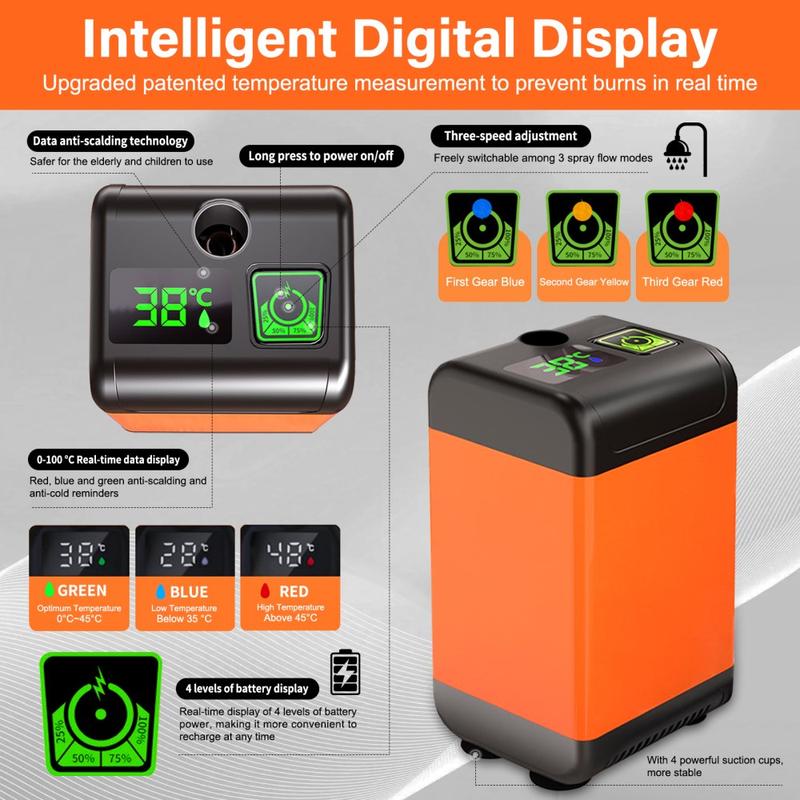 Chuveiro elétrico de campismo com monitorização inteligente da temperatura e 3 modos de pulverização - 7800mAh