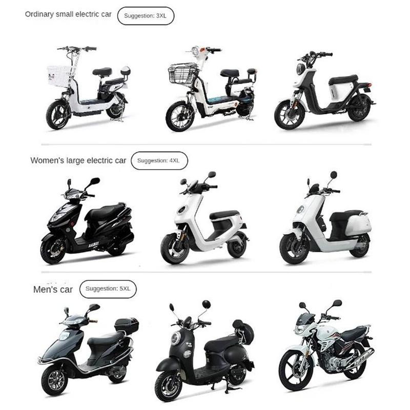 - Dimensionamento: Oferece uma cobertura generosa para se adaptar a uma vasta gama de motociclos, scooters ou ciclomotores