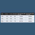 - Dimensões: 153 x 103 x 78cm (5XL); 142 x 100 x 73cm (4XL)