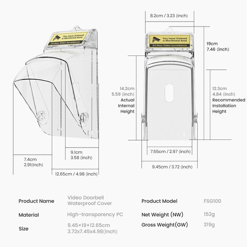 Fabricada em policarbonato de alto impacto (PC), a cobertura é resistente ao calor, ao choque e altamente transparente. Protege a campainha da porta sem bloquear a câmara, os sensores de movimento ou as luzes indicadoras.