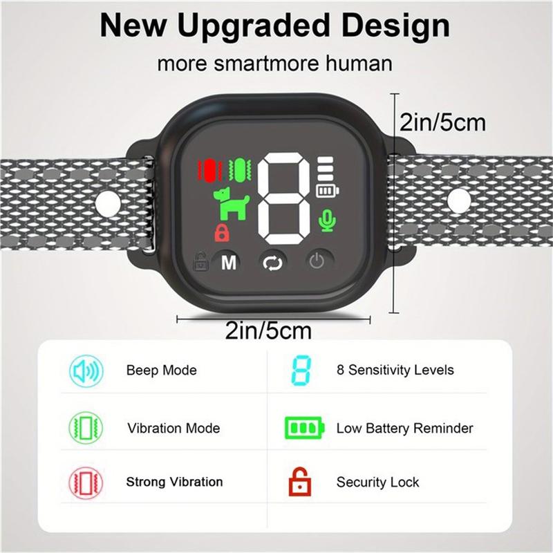 Coleira Anti-Latido com Ecrã Táctil para Cães - Bip e Vibração de Motor Duplo, Coleira de Treino Sem Choques, IP67 à Prova de Água