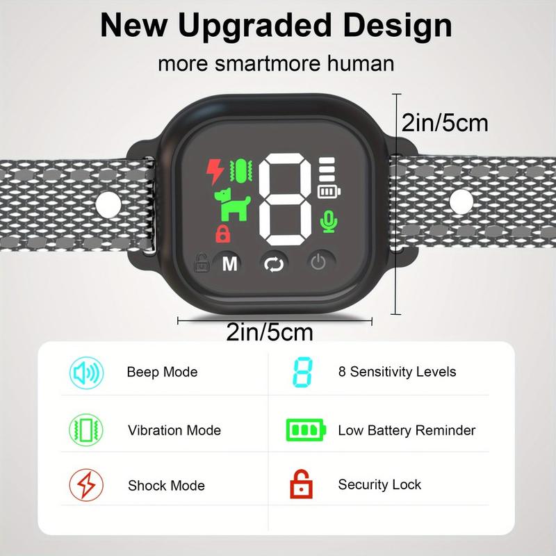 Esta coleira combina tecnologia avançada com certificações de segurança, oferecendo aos donos de animais uma ferramenta de treino eficaz e humana para gerir o ladrar e o comportamento dos seus cães.
