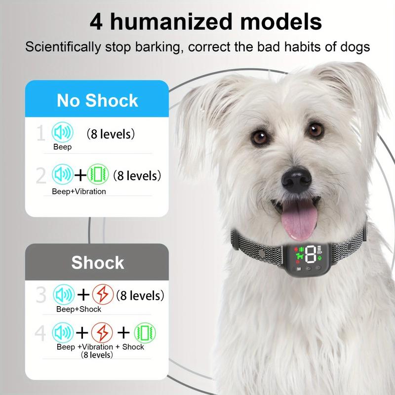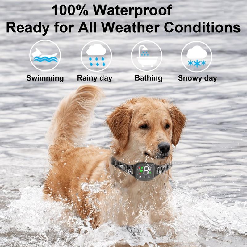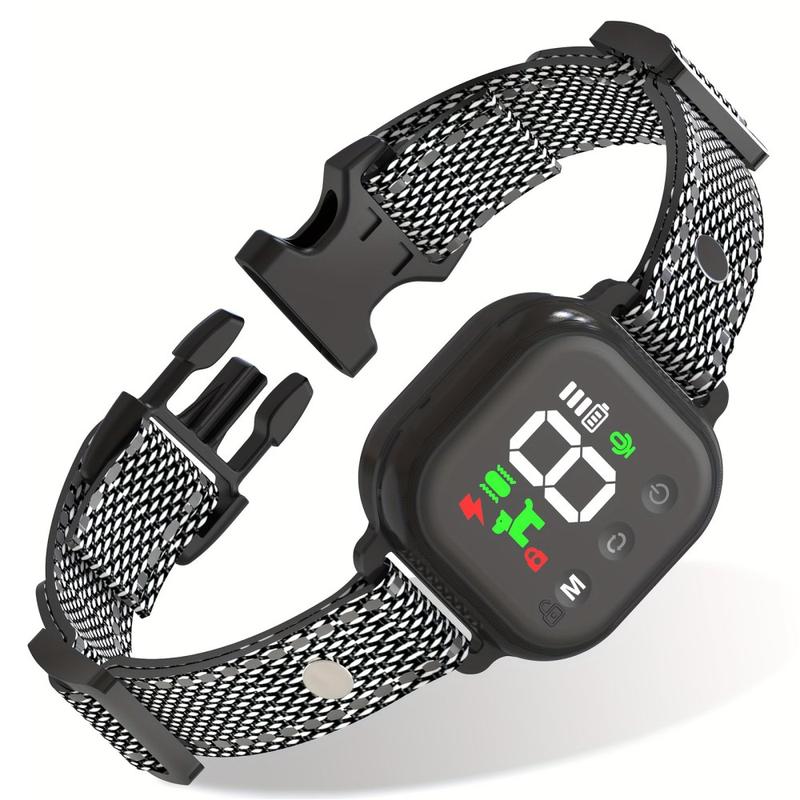 Coleira de controlo de latidos de cães com ecrã a cores - Treinador automático de choques, vibrações e sons - Nível à prova de água: IP67, Comprimento da coleira: 10-70cm