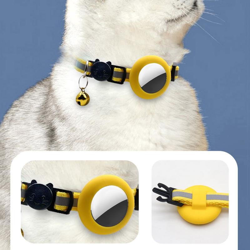 Conjunto de coleira reflectora com campainha para cão/gato e capa de silicone AirTag 1/2 com película de proteção