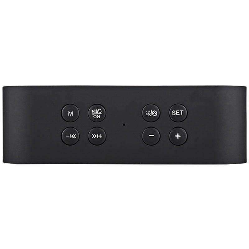 - Usando os botões integrados, também pode definir a hora, o alarme e o brilho do relógio