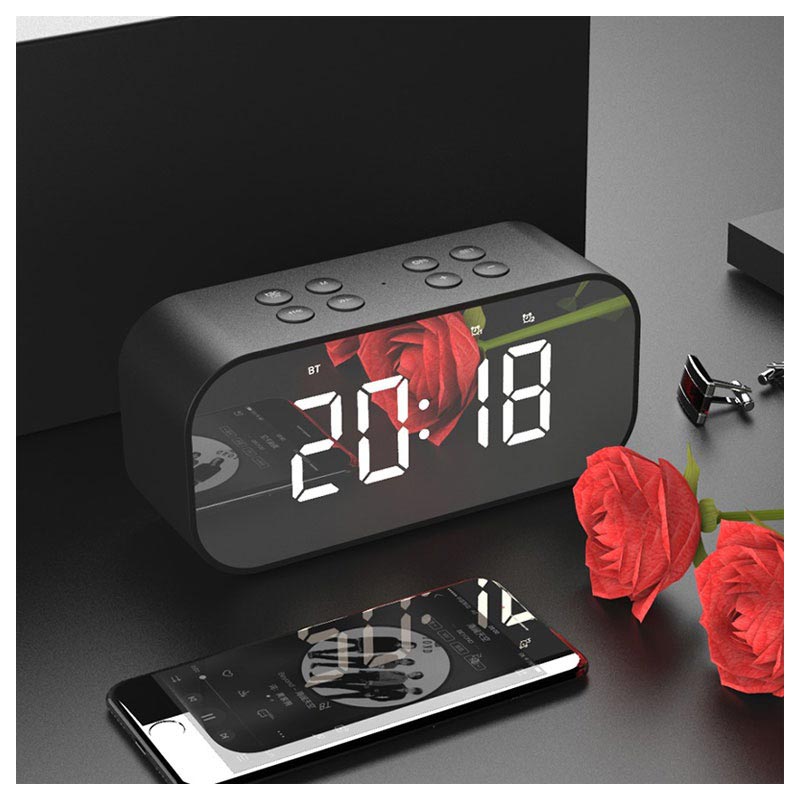 A função de coluna Bluetooth deste relógio despertador LED é adequada para quase todos os smartphones ou tablets com ou sem ligação Bluetooth, pois tem também uma entrada áudio de 3,5mm. E há mais uma opção de transmissão de música, a de ouvir música a partir do seu cartão de memória TF.