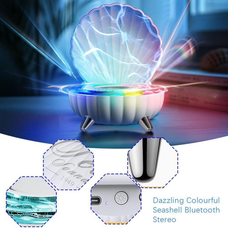 Altifalante Bluetooth em forma de concha com iluminação ambiente RGB - 5W, 1200mAh, USB-C