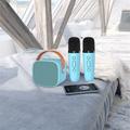 Transforme qualquer sala de estar num mini palco. O conjunto de karaoke P2 Kids combina um potente altifalante de 6 W, dois microfones sem fios e transmissão 5.0 compatível com Bluetooth num corpo leve para viagem que recarrega em menos de 3 h. A reverberação de eco incorporada acrescenta vocais com qualidade de estrela, enquanto a prática pega de transporte permite que os jovens artistas levem o espetáculo para qualquer lugar.