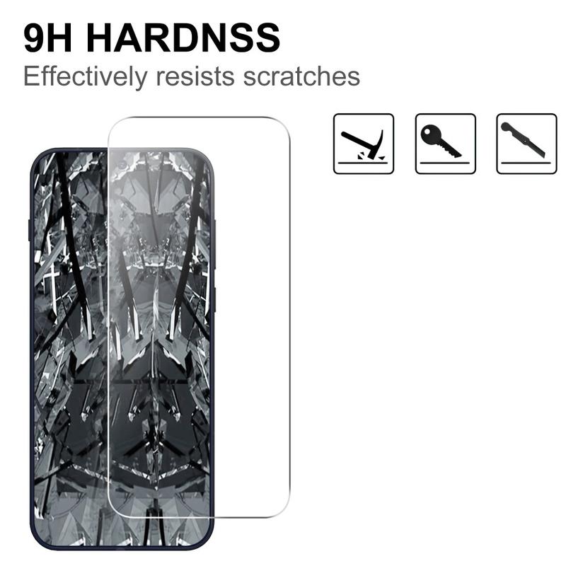 - Enquanto o protetor de tela é composto de vidro temperado de alto nível, anti-impressão digital e à prova de quebra, o filme garante a proteção da lente da câmera