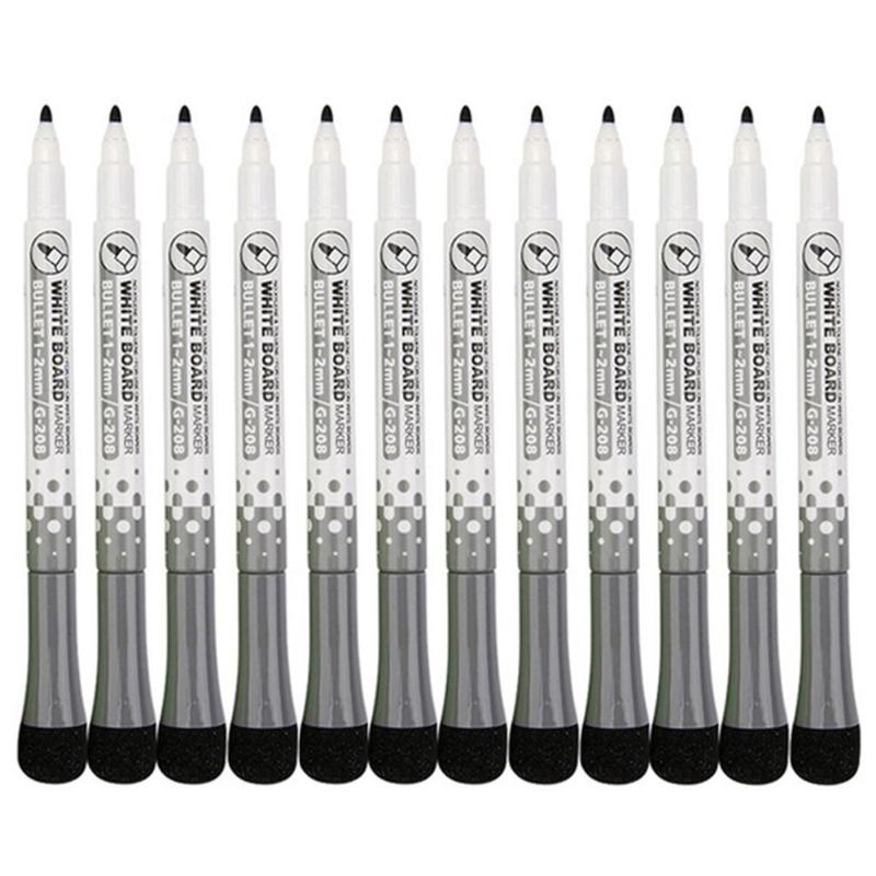 Conjunto de 12 marcadores de quadro branco com apagador