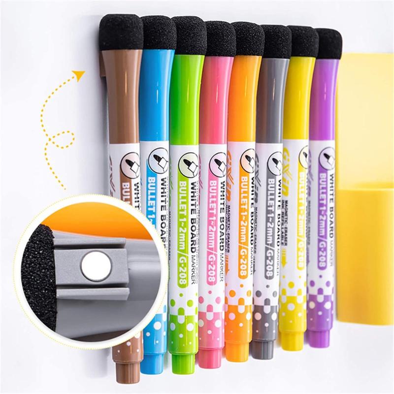 Ampla aplicação: Os marcadores de apagar a seco de 8 cores vivas podem ser aplicados em superfícies lisas, como o quadro branco, porcelana, plástico, vidro, etc., úteis para a escola e o escritório