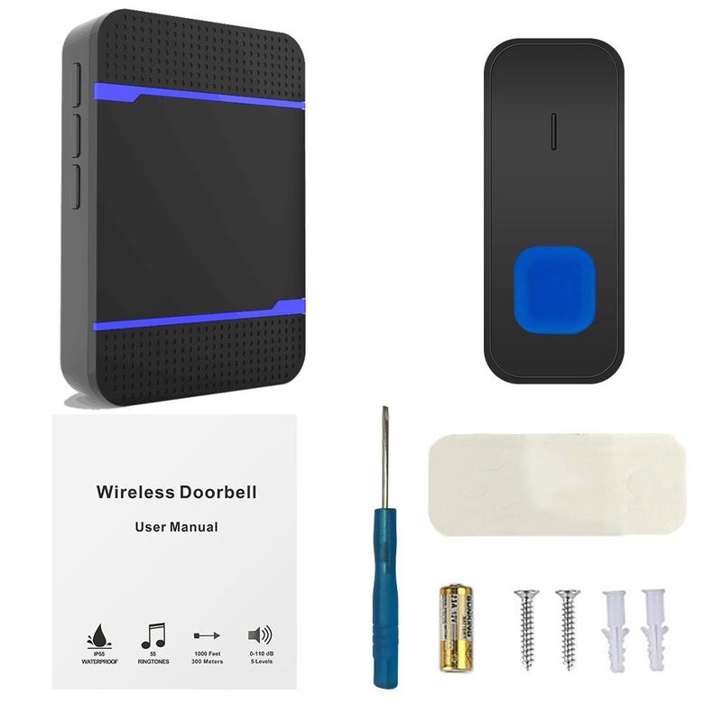 Conjunto de campainha sem fios com 2 receptores e 2 botões - 55 melodias, IP55