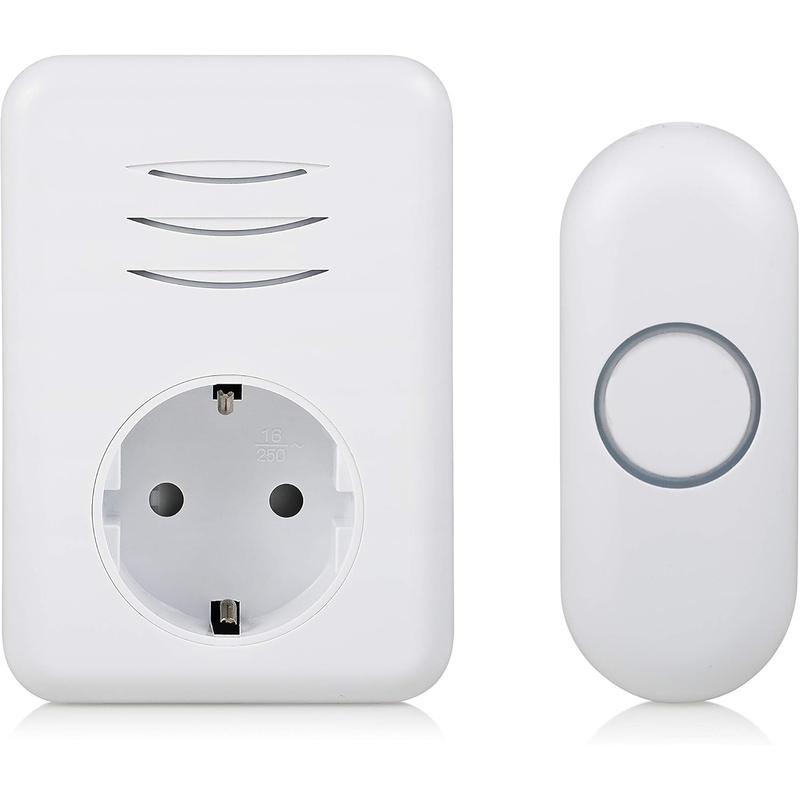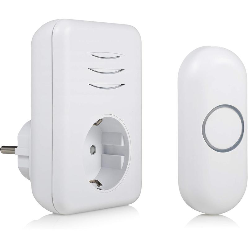 - Fácil instalação "faça você mesmo": Basta fixar o botão da campainha com fita adesiva de dupla face e ligar a campainha a qualquer tomada normal
