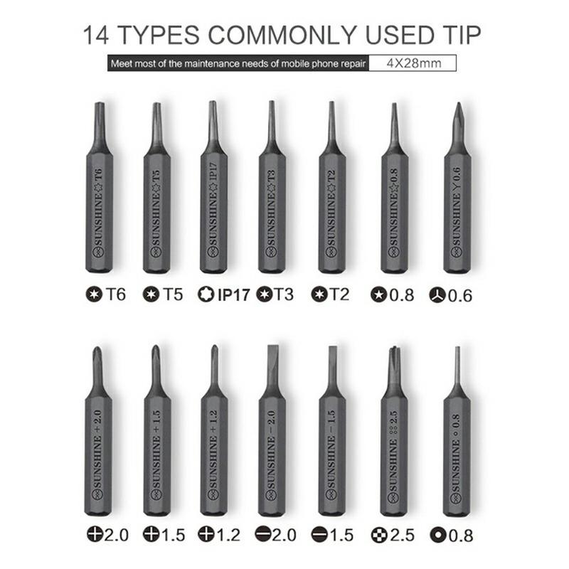 - Inclui 14 pontas magnéticas em liga de aço S2 para necessidades de reparação comuns