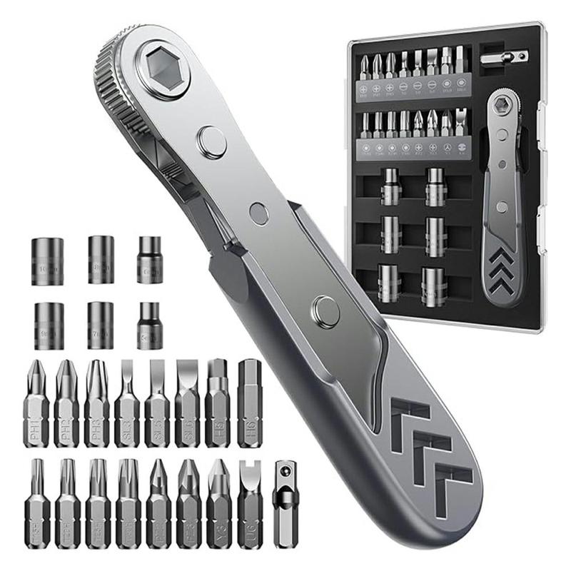 Este conjunto de chaves de fendas é uma excelente escolha para quem procura uma ferramenta de reparação mais versátil, tanto para espaços apertados como para tarefas do dia-a-dia. O design de catraca em ângulo reto facilita muito os trabalhos mais difíceis, enquanto as pontas e chaves de soquete incluídas oferecem uma cobertura prática para uma vasta gama de reparações.