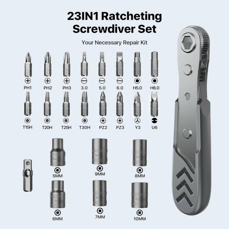 - 1 x Conjunto de chaves de fendas com catraca 23 em 1