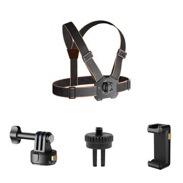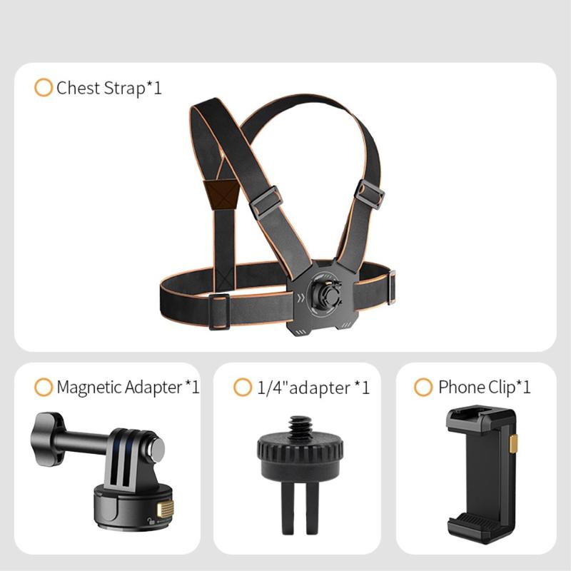 Conjunto de cinta torácica para câmara de ação GP-032 - Base magnética de libertação rápida, mini adaptador de 1/4" e clipe para telemóvel para filmagens em primeira pessoa