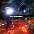 Farol branco com 4 modos de iluminação comutáveis e luz traseira com 6 modos de iluminação para selecionar