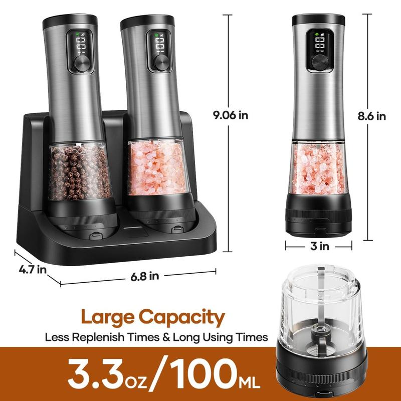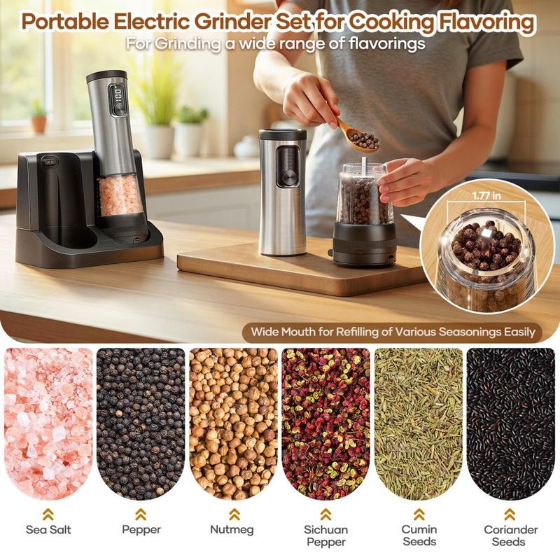Conjunto de moedor de especiarias elétrico recarregável em aço inoxidável - cabeça de moagem em cerâmica, ajuste de 5 níveis de aspereza, capacidade de 100 ml