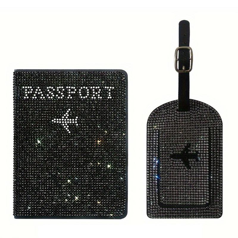Conjunto de porta-passaportes e etiqueta de bagagem em strass - Organizador de viagens em poliuretano brilhante
