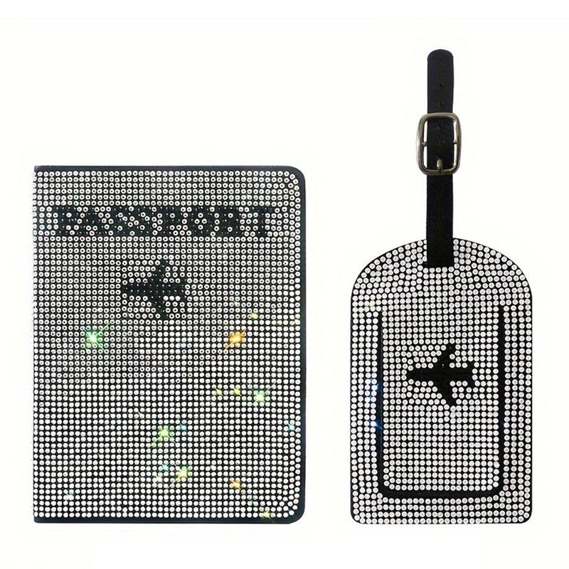 Conjunto de porta-passaportes e etiqueta de bagagem em strass - Organizador de viagens em poliuretano brilhante