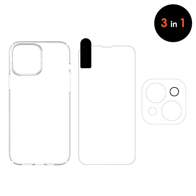 - Ideia criativa: design 3 em 1, capa de telefone combinada com protetor de tela de vidro temperado e protetor de lente de câmera de vidro temperado