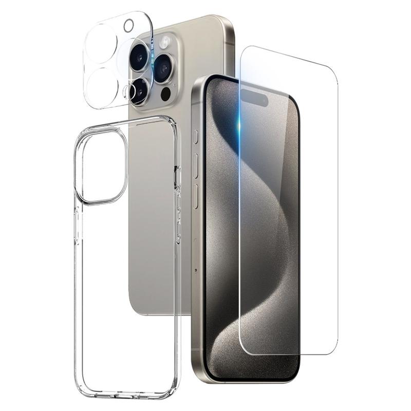 - Ideia criativa: design 3 em 1, capa de telefone combinada com protetor de tela de vidro temperado e protetor de lente de câmera de vidro temperado