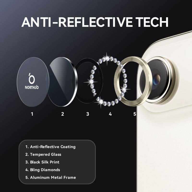 O protetor de lentes com strass da NORTHJO oferece o melhor dos dois mundos - brilho premium e durabilidade de alta resistência. Melhora a aparência do seu telefone, mantendo a nitidez da fotografia profissional e a proteção diária.