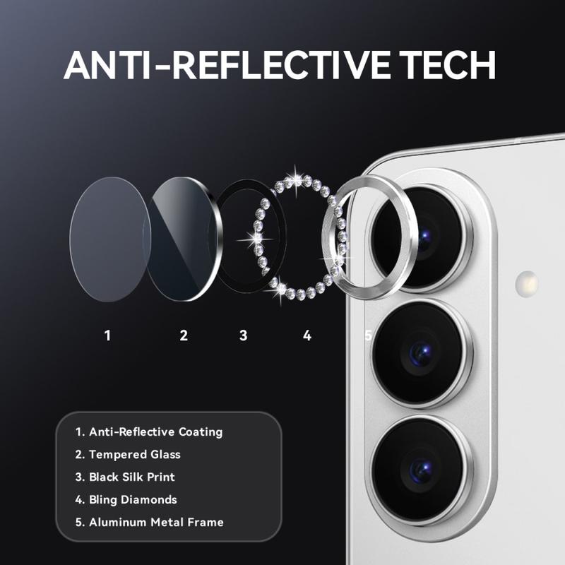 Acrescente brilho e proteção ao seu Samsung Galaxy S26 com o Protetor da lente da câmara NORTHJO. Concebido com strass cintilantes e vidro temperado cortado com precisão, mantém a lente da câmara protegida contra riscos, poeira e impactos, ao mesmo tempo que dá um toque de elegância e luxo.