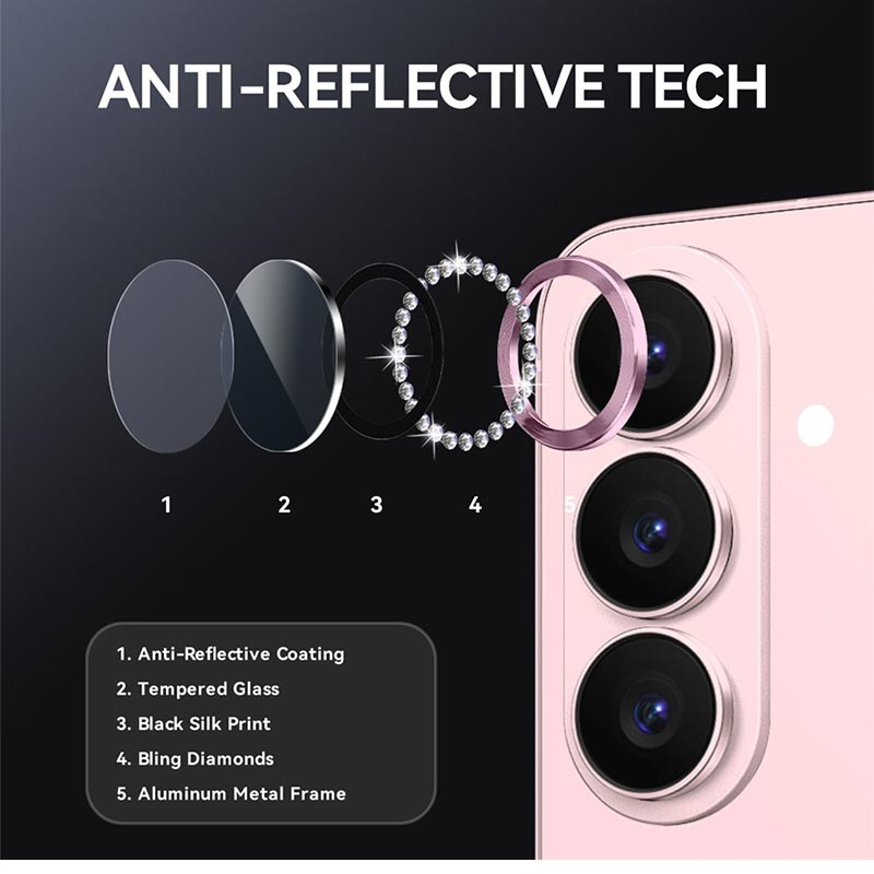 Acrescente brilho e proteção ao seu Samsung Galaxy S26+ com o Protetor da lente da câmara NORTHJO. Concebido com strass cintilantes e vidro temperado cortado com precisão, mantém a lente da câmara protegida contra riscos, poeira e impactos, ao mesmo tempo que dá um toque de elegância e luxo.
