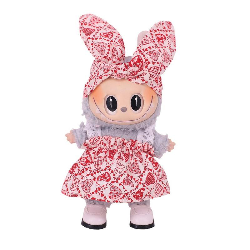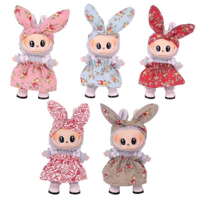 Conjunto de vestido e bandolete para festa no jardim para o mini boneco Labubu de 17cm - Roupa de festa cortada à medida, tecido macio, design fácil de vestir