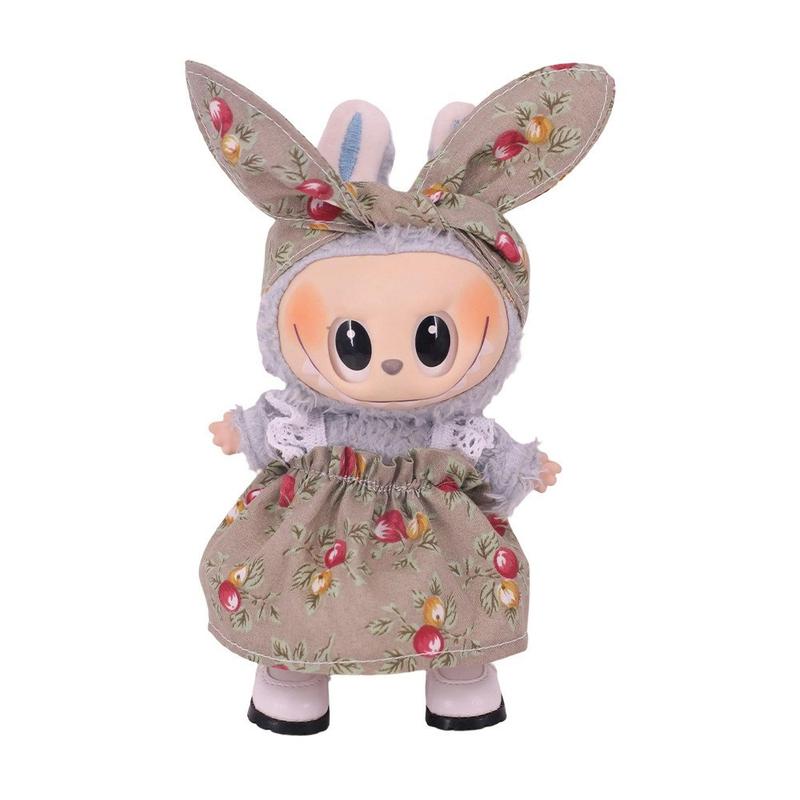 Conjunto de vestido e bandolete para festa no jardim para o mini boneco Labubu de 17cm - Roupa de festa cortada à medida, tecido macio, design fácil de vestir