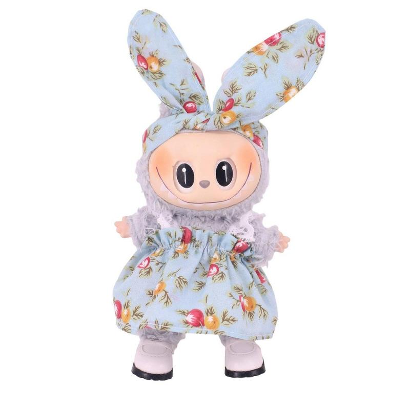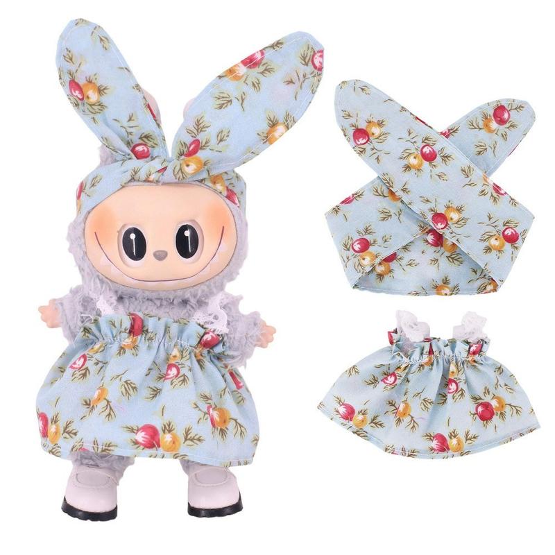 Conjunto de vestido e bandolete para festa no jardim para o mini boneco Labubu de 17cm - Roupa de festa cortada à medida, tecido macio, design fácil de vestir