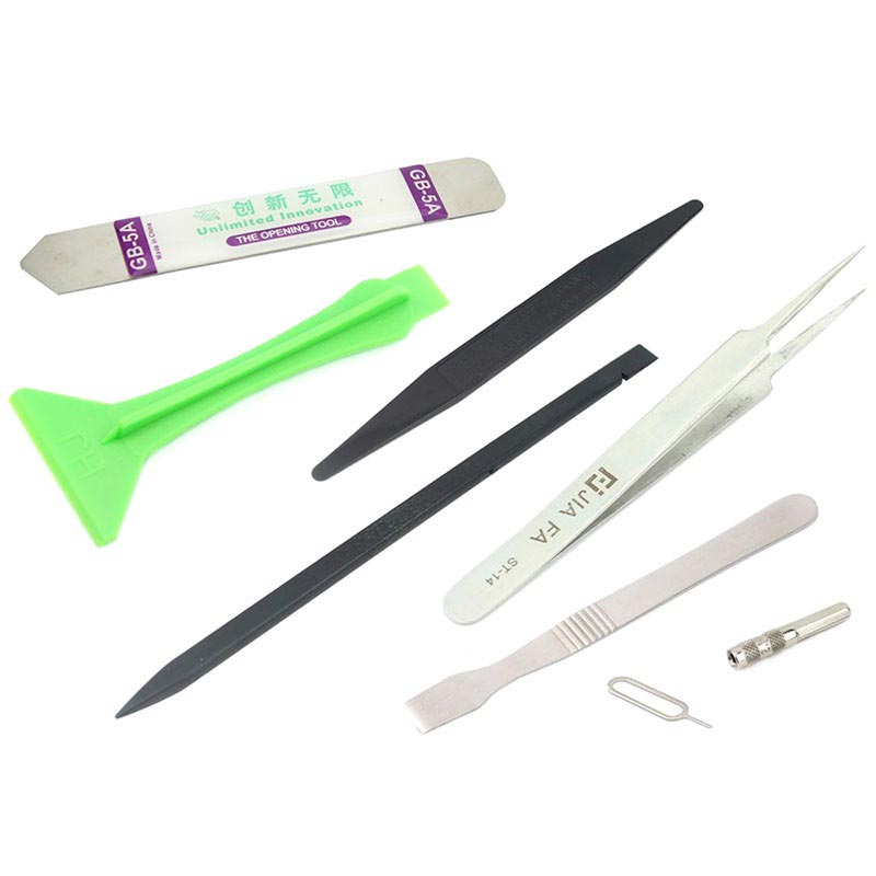 Conjunto de ferramentas profissionais de alta qualidade Jiafa JF-8156 para desmontar e reparar dispositivos. O conjunto contém chaves de fenda, ferramentas de alavanca, ventosa e ferramenta de ejeção. O Jiafa JF-8156 é um conjunto de ferramentas ideal para desmontar e remontar seus dispositivos.