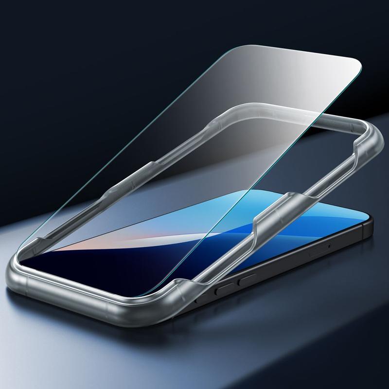 A instalação do vidro é extremamente fácil - a estrutura de posicionamento incluída no conjunto facilita a instalação. É a combinação perfeita de conforto, segurança e funcionalidade para o seu iPhone 16 Pro Max.