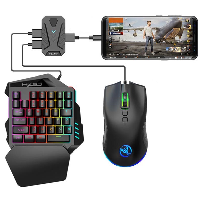 Conjunto Móvel de Gaming HXSJ - Teclado de Mão Única, Rato, Hub - V100, A883, P8