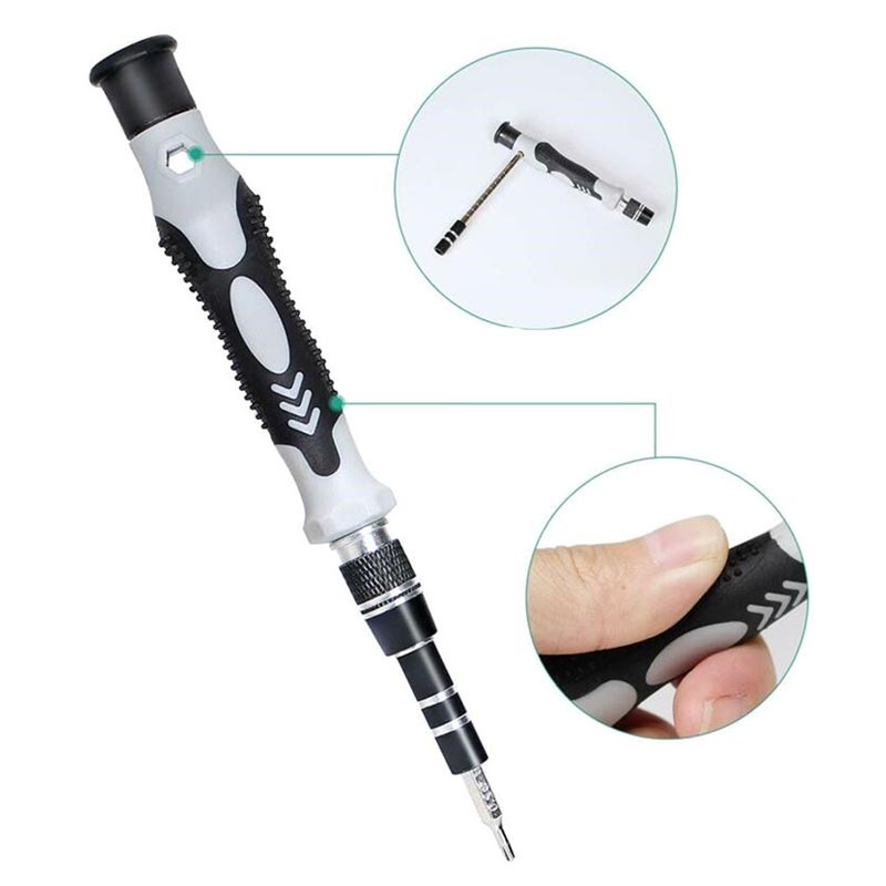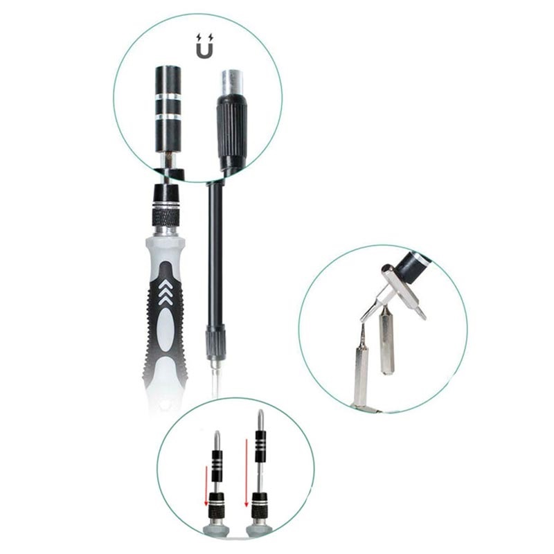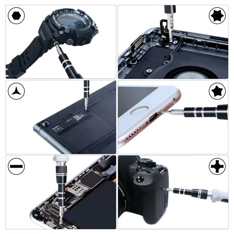 Desmonte as suas engenhocas ou eletrodomésticos com confiança como um eletricista profissional! Tudo o que precisa é deste conjunto multiusos de chave de fendas magnéticas 115 em 1 e de ferramentas de abertura!