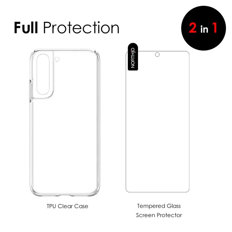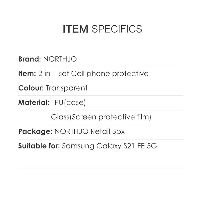 Conjunto de Proteção 2-em-1 Northjo, Capa de TPU e Protector de Ecrã em Vidro Temperado para Samsung Galaxy S21 FE 5G