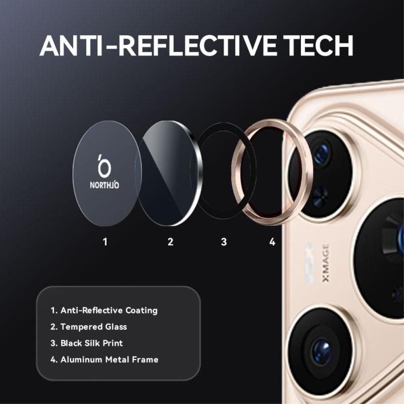 Melhore o seu Huawei Pura 80 Pro, Pura 80 Pro+ com o protetor da lente da câmara Northjo. Com um anel de alumínio com veios de CD, acrescenta um toque elegante e moderno ao seu Huawei Pura 80 Pro, Pura 80 Pro+, ao mesmo tempo que oferece uma proteção robusta. O vidro temperado 9H protege contra riscos, impactos e poeira, assegurando que a lente da câmara permanece cristalina. Com uma instalação fácil e sem ferramentas, pode aumentar a durabilidade e a estética do seu Huawei Pura 80 Pro, Pura 80 Pro+ em segundos.